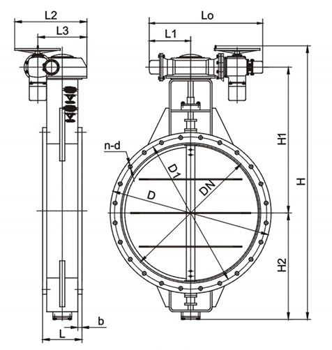 | DN | L | D | D1 | b | n-d | H | H1 | H2 | Lo | L1 | L2 | L3 |